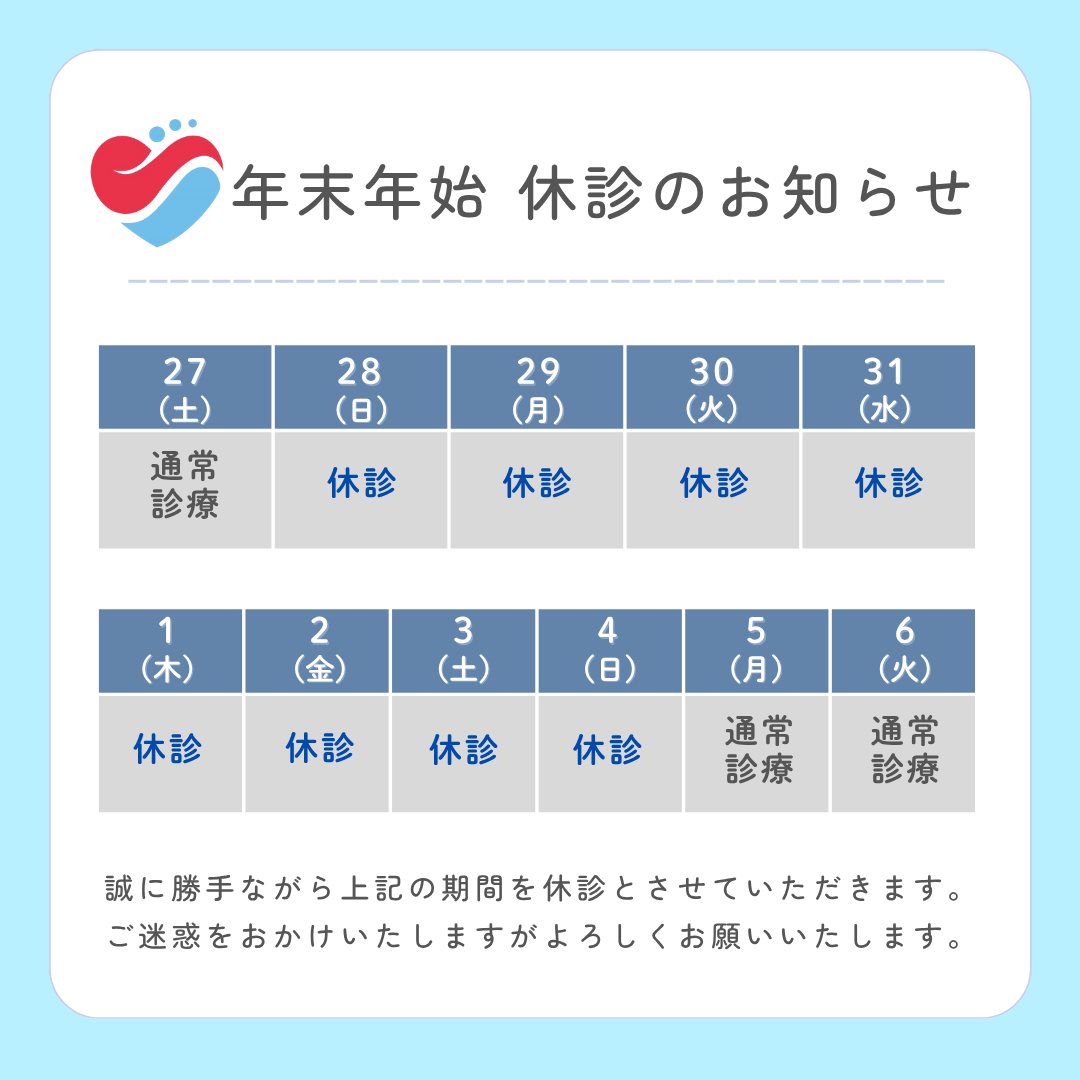 2025年12月28日(日)から2026年1月4日(日)まで休診となります。